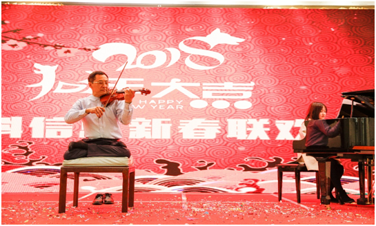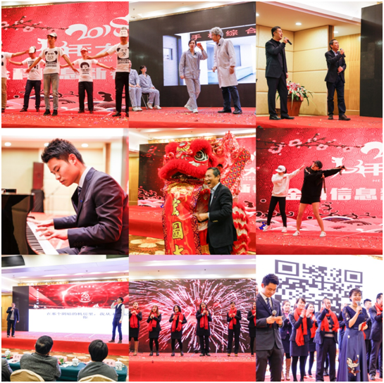 下午3时,随着一阵密集的锣鼓声,“祥龙献瑞”掀开了金科人自己精心打造的文艺汇演序幕,广东分公司的舞龙舞狮表演给会场带来一阵阵热烈的掌声和欢呼声,庆典大会热热闹闹的开场了。接着,何教授高歌了一曲《共和国之恋》,气势恢宏,情感充沛,随后又以独创的双盘姿势拉响了小提琴曲《Meditation》,旋律悠扬,曲调和谐,展现了他独有的风采和气质;南昌技术部带来的群魔乱舞《你干嘛》,让我们看到了技术男们的热情与豪迈;大客户部、销售管理部、资产管理部以及客户服务部共同出演的小品《手机综合症》妙趣横生,令观众捧腹不已的同时也给我们带来很深的反思;上海分公司的《大王叫我来巡山》,精心设计的服装道具、诙谐逗趣的表演风格让现场充满了欢声笑语。小朋友也来助阵了,一曲童音版的《高尚》唱进了每个人的心里,久久回荡,绕梁不绝;在金科有“大旋风”之称的谢麒麟作为领舞奉献了《走起》,一如既往的帅、酷;而何董与任江总深情演绎的《一路上有你》,直击人心房,不免让人热泪盈眶……由北京分公司财务部、行政部带来的极富当下流行元素的《C哩C哩舞》动感十足,帅气的男主持黄斌带来的钢琴曲《you raise me up》则细腻而绵长。最惊艳的当属财务部林莹带来的精美绝伦的《摩登舞》,脚生莲花步步生风,果然气质非凡,而商务部、技术部、政企部、销售管理部非常欢乐的歌舞表演《欢乐中国年》,俏皮可爱,年味十足。金科信息群里面不时出现的大红包给现场的气氛也带来了一次次高潮,同时象征着金科未来的发展也一定红红火火,蒸蒸日上。最后,联欢会在经典歌曲《相亲相爱的一家人》中落下帷幕,台下掌声不断,大家都沉浸在这欢乐祥和的氛围中,久久不忍离去。