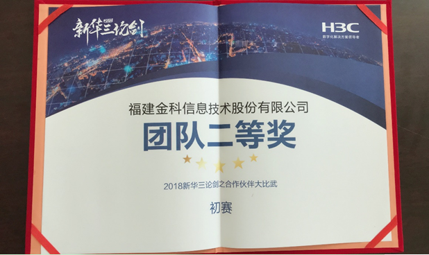 一年一度的“新华三论剑杯合作伙伴大比武福建赛区海选决赛“于2018年9月7日下午落幕,我司吴丽贞、黄斌、陈鑫、张旻、李晓东等五人组队代表金科参赛。在初赛的笔试环节,通过合理分工、认真备战取得了笔试双百的成绩,在二十七支参赛队中脱颖而出进入决赛。在决赛环节,参赛团队成员克服了时间短、选题偏、案例经验不足等困难,积极寻求内外部资源,精心准备、模拟练习,最终以优异的表现、默契的配合在决赛中取得福建赛区第二名的好成绩。